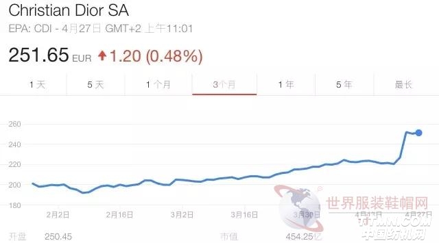 图为Christian Dior近三个月来的股价走势