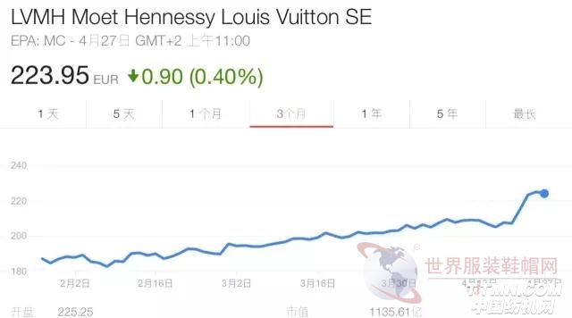 图为LVMH近三个月来的股价走势