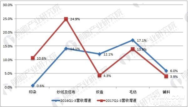纺织制造细分行业营收增速对比