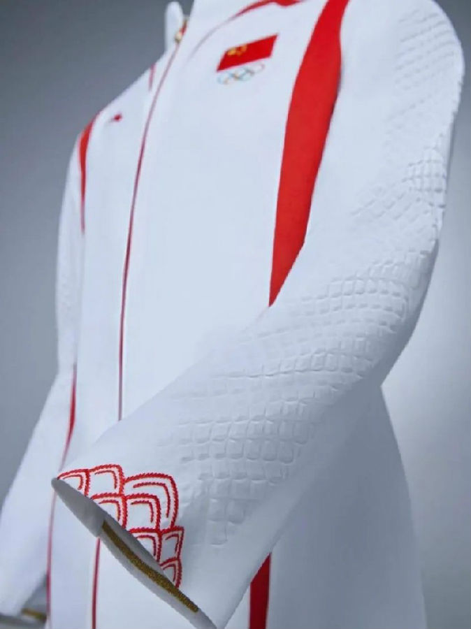 巴黎奥运会中国体育代表团领奖服来自安踏,其融入了龙须和龙鳞的元素,衣袖上是压花纹路,并使用了拼接和刺绣的工艺其,面料选用了再生尼龙和再生涤纶等环保材料,从原料到生产全程,实现了超过50%的“碳减排”,据称是中国首套经过权威机构认证的“碳中和”奥运领奖装备。