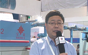 (图为中国纺机网记者现场采访宝成机械副总经理 尚宏卫)