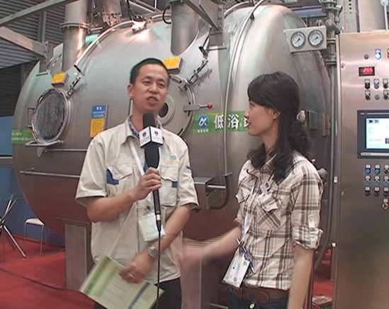 在2011上海纺机展上,无锡市信谊机械有限公司的陈华介绍说:“我们信谊机械就是从事纺织、印染行业十几年,从研发、生产一条龙,从染缸、定型整套印染设备都有。现在我们主要做的客户就是国内比较中高档的企业为主,打造国内,争取上游顶级品牌。此次参展我们主要带来了低浴比染缸还有一个拉幅定型机,还有一台拉毛机,这次我们特别展出就是这台低浴比染色机,就是作为我们公司的新产品。这台机器就是比如我们这台低浴比染缸的话,它比国内同行业产品,突出的就是节能,现在国家提倡低碳。所以我们这个染缸就是以这个理念为研发基础,就是研制了这个低浴比染缸,它相对来说就是比较节能、节电,节水,节省 助剂,就是为印染企业厂家节省成本,从客户基础考虑的。对于产品质量和客户服务,我们信谊有先进的技术设备,我们有激光、切割、数控、转打冲还有数控折弯,我们有先进的加工设备,有严谨的管理团队,我们从研发到制作到质检各方面都层层把关,我们在售后服务方面,我们有几十人的团队专门在全国各地安装售后服务,保证客户机器正常运行。”