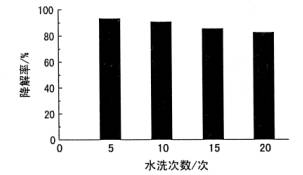 按GB/T3921.3-1997《纺织品耐洗色牢度实验方法》进行洗涤,然后测试洗涤数次后负载溶胶棉织物的光催化性能。