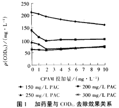 | 注:原水水质ρ(CODcr)=1140mg/L,ρ(油)=216mg/L,pH=9.87。 |