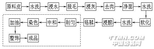 一、废水产生过程 皮革加工是以动物皮为原料,经化学处理和机械加工而完成的,其生产基本工艺如图所示: