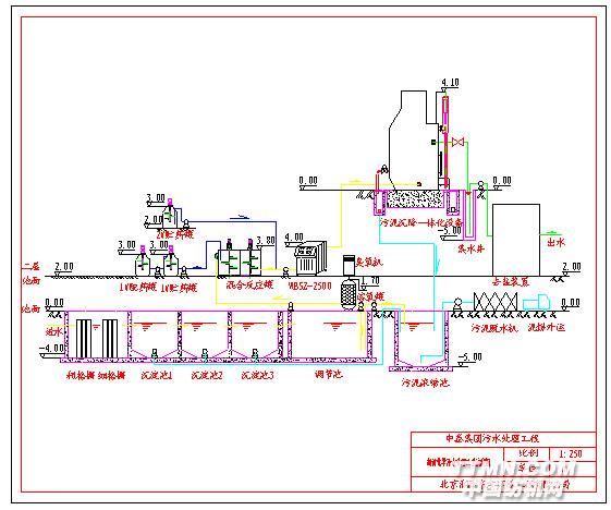 3.工程实例: 3.1 江门市蓬江皮革厂 蓬江皮革厂座落在江门市区天沙河岸,是一家老字号(外资)企业,主要产品结构,以牛皮制革为主也有部分猪皮与羊皮,又以盐湿生皮为主,亦有些兰皮深加工,视市场与订单走势而定。 早日已建成1200m3/d 能力的集中治理设施,都因为生皮制革生产过程,排污废水含盐份高,还有重金属铬与硫化物等毒性,而且毛发、碎皮肉粒等,SS杂物多,在洗皮时,还用了大量的Cao----Ca(OH)2,故此渣量大。虽然几经改造,但至今仍未达标排放,其中生化净水的出口CODcr>300mg/l。 原废水水质