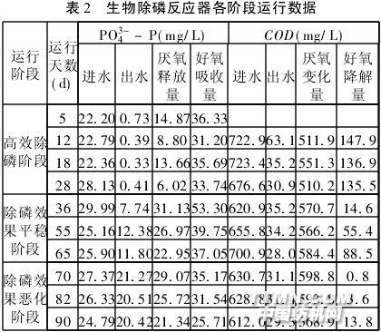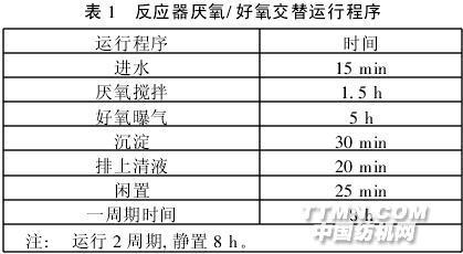 2试验结果与讨论 反应器采用的是厌氧/好氧交替运行具体方式见表1。