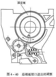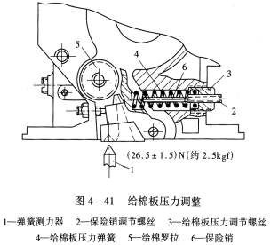 (2)以上几个部位的调整顺序为:调整给棉板钳口进出位置一调整给棉板压力一调整给棉板与给棉罗拉隔距。