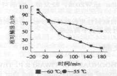 由于碱性果胶酶在纺织前处理工艺中的反应时间一般在lh左右,因此,研究酶的热稳定性就显得非常重要.在