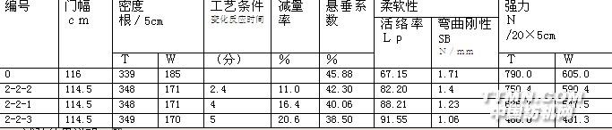 试验的减量率、悬垂系数、活络率、弯曲刚性强力等数据见(表一)。