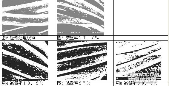 我们对不同减量率的织物进行电镜观察,并摄制电子显微照片如图2—6。