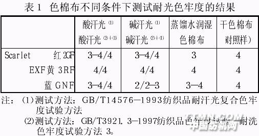 经活性染料染色的棉布,在不同条件下进行耐光色牢度试验,其耐光色牢度稳定性是不同的。本试验将色棉布、分别测试干、湿条件下的耐光色牢度,以及皂洗前后的酸汗光、硷汗光复合色牢度。比较这些不同的测试结果,分析研究影响这些耐光色牢度不同变褪色程度的因素。