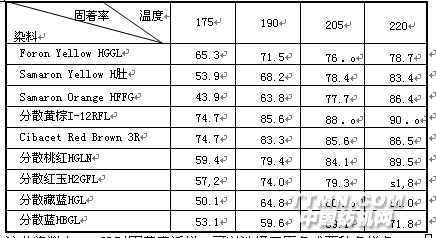 这些染料在220℃时固着率近似,可以选择三原色或两种色拼色,也可以单独使用。