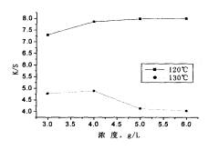 从图5(a)可以看出,改性温度对碳黑上染有很大影响,温度太高不利于碳黑上染,改性剂Ep浓度的影响随温度不同呈现不同趋势,在较高温度下,随改性剂浓度增大K/S值呈现下降趋势,尤其是当浓度大于