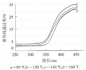 | 图7 不同焙烘温度处理真丝水洗后的紫外线透过率 |