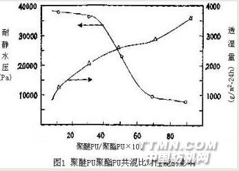 1、聚醚型PU与聚酯型PU共混比对涂层织物性能的影响