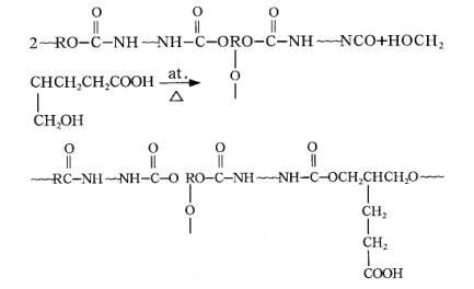 -NCO含量达到要求时,加入二羟甲基丁酸和少量N-甲基吡咯烷酮稀释,在