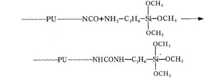 氨丙基三甲氧基硅烷是硅烷偶联剂,引入聚氨酯结构中,使端基的一个交联基团(-NC0)变成三个交联基团[-Si(OH)3],交联点增加,抗皱能力增强,表3列出了几种(即中间结构相同)不同封端的聚氨酯整理剂的抗皱性能。