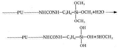 端羟基聚丁烯(HTPB) 工业级淄博齐鲁乙烯化工有限公司;端羟烷基聚硅氧烷工业级美国道康宁公司;三羟甲基丙烷(TMP) 工业级德国巴斯夫公司;二羟甲基丁酸 工业级 日本化成株式会社;异佛尔酮二异氰酸酯(IPDI) 工业级德国拜耳公司;N-甲基吡咯烷酮工业级德国巴斯夫公司;氨丙基三甲氧基硅烷工业级湖北德邦化工新材料有限公司;三乙胺工业级常州市东顺化工有限公司;去离子水工业级自制。