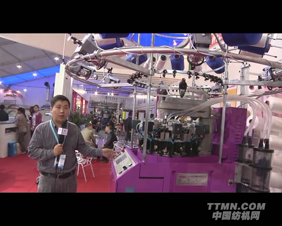 凹凸精机的业务经理朱安在为中国纺机网广大网友介绍他身后的这台单面针织机