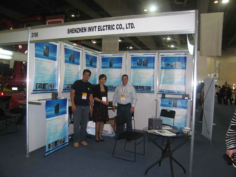 近日,2010墨西哥电力电工设备及技术展览会(Expo Electrica International 2010)在墨西哥Centro Banamex完美落幕。该展会是拉美地区最有影响力的电力展之一,本次为第十三届,吸引了来自中国、拉美、美国等众多展商同台竞技,以最先进的技术与产品共同演绎了电气传动、工业控制领域的精彩未来。 作为中国变频器行业的领头羊,英威腾携CHF、CHE、CHV等系列变频产品倾情展示,推出自主研发的交流伺服产品,并以全新的面貌和独特的创意脱颖而出,成为全场瞩目焦点,给人们留下了极为深刻的印象。强大的产品阵容、良好的品牌形象,吸引了大批的客户前来洽谈交流,并对英威腾的产品品质、性能、服务称赞不已,纷纷表达合作意向。