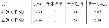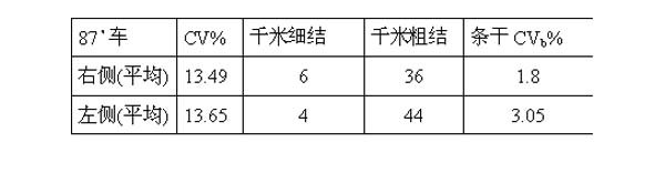 车号:87﹟ 品种:CJ11.8tex 锭数:120锭(其中左、右侧各60锭)