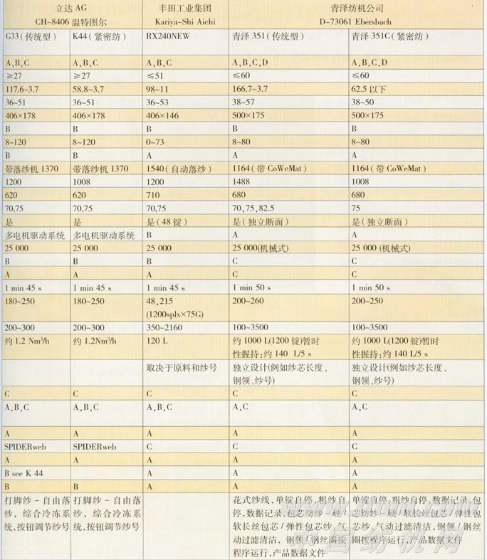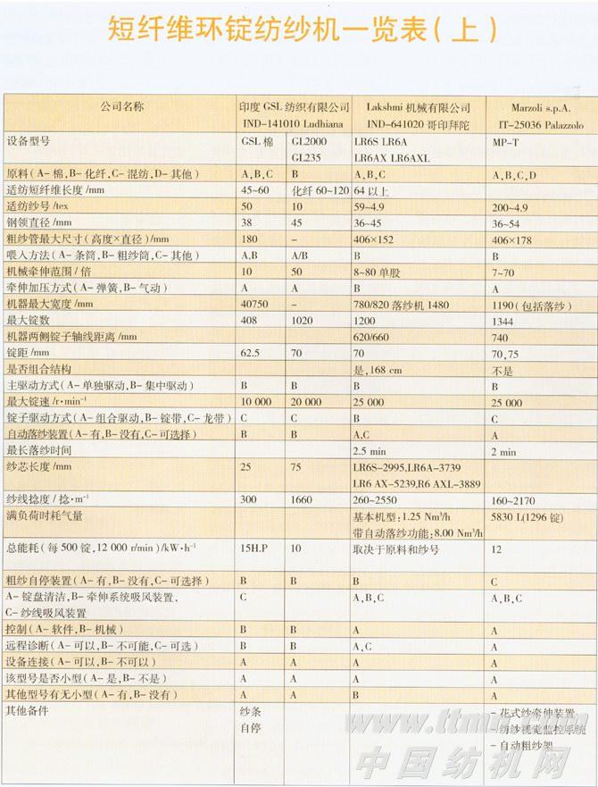 短纤维环锭纺纱机一览表(上)