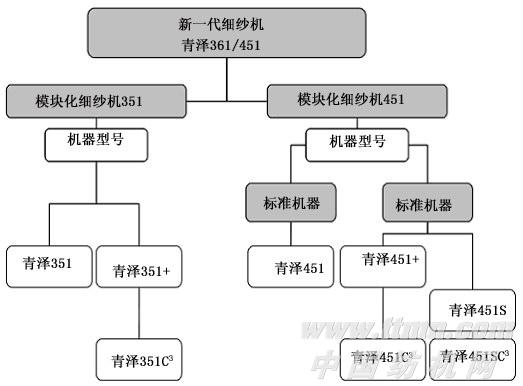 模块化设计的细纱机是具有许多创新的技术特性和应用范围广泛的多用途模块化设备,她包含了常规的棉纺环锭细纱机(青泽351)和使用CompACT3技术的青泽351 C3 型紧密纺细纱机,以及可以根据需要在将来使用CompACT3技术进行升级换代的常规环锭纺细纱机青泽351 +。