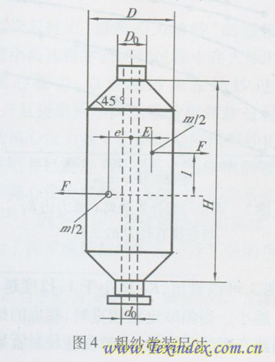 (2)如果卷装动平衡不良,则在运行中会产生力偶矩M(见图4),M=F l,F为离心惯性力、l为力偶臂;而F=,meω2/2,m为管纱质量,e为管纱质心偏心距,ω为筒管角速度。即有: