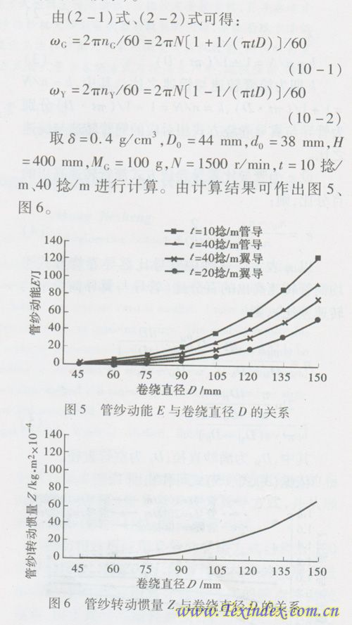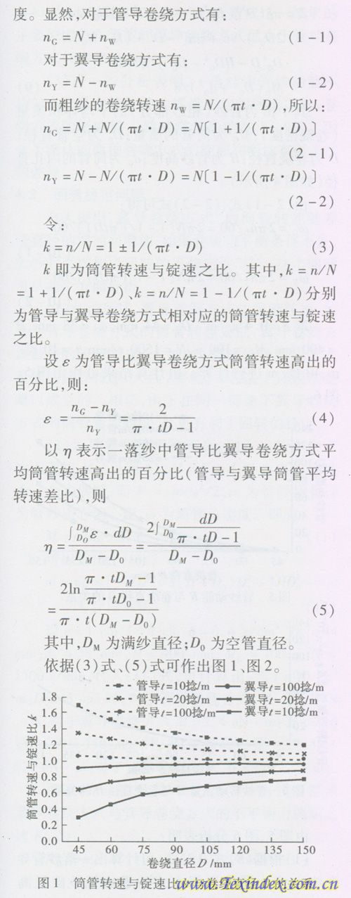 有人认为,“随着卷绕直径的增加,管纱重量随之增大,当采用管导方式时,管纱卷绕直径越大,其转速越小,动力消耗较均衡,回转亦较稳定;当采用翼导方式时,卷绕直径越大,筒管转速越高,动力消耗不均衡,这个问题可以从定轴转动刚体的动能来研究。