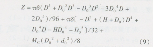 其中,E为整个管纱(含筒管)绕锭轴旋转的动能;Z为整个管纱的转动惯量;ω为管纱的转动角速度。显然E除以传动效率就是使管纱以速度ω旋转所需的动力消耗。根据转动惯量计算公式和管纱尺寸(见图4)可求得: