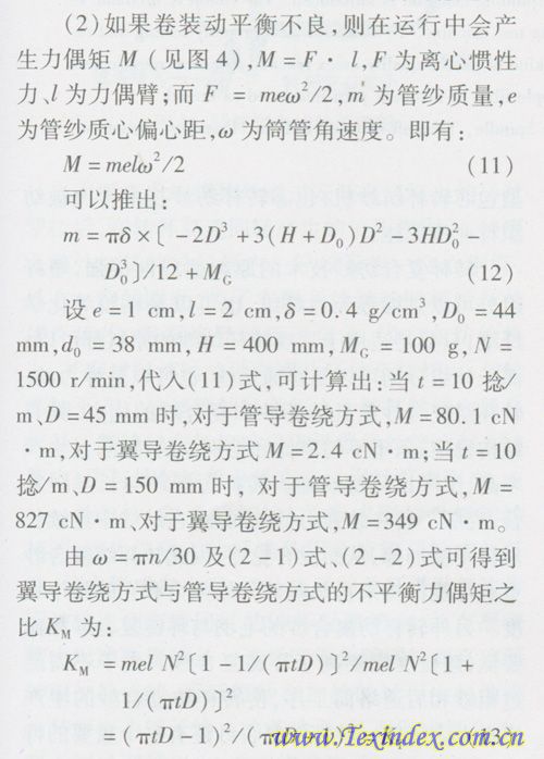 有人提出,翼导卷绕方式“因筒管转速随卷绕直径的增加而增加,如果卷装动平衡条件不良,大纱时更增加了回转的不稳定性”。这个问题可从两个方面分析。