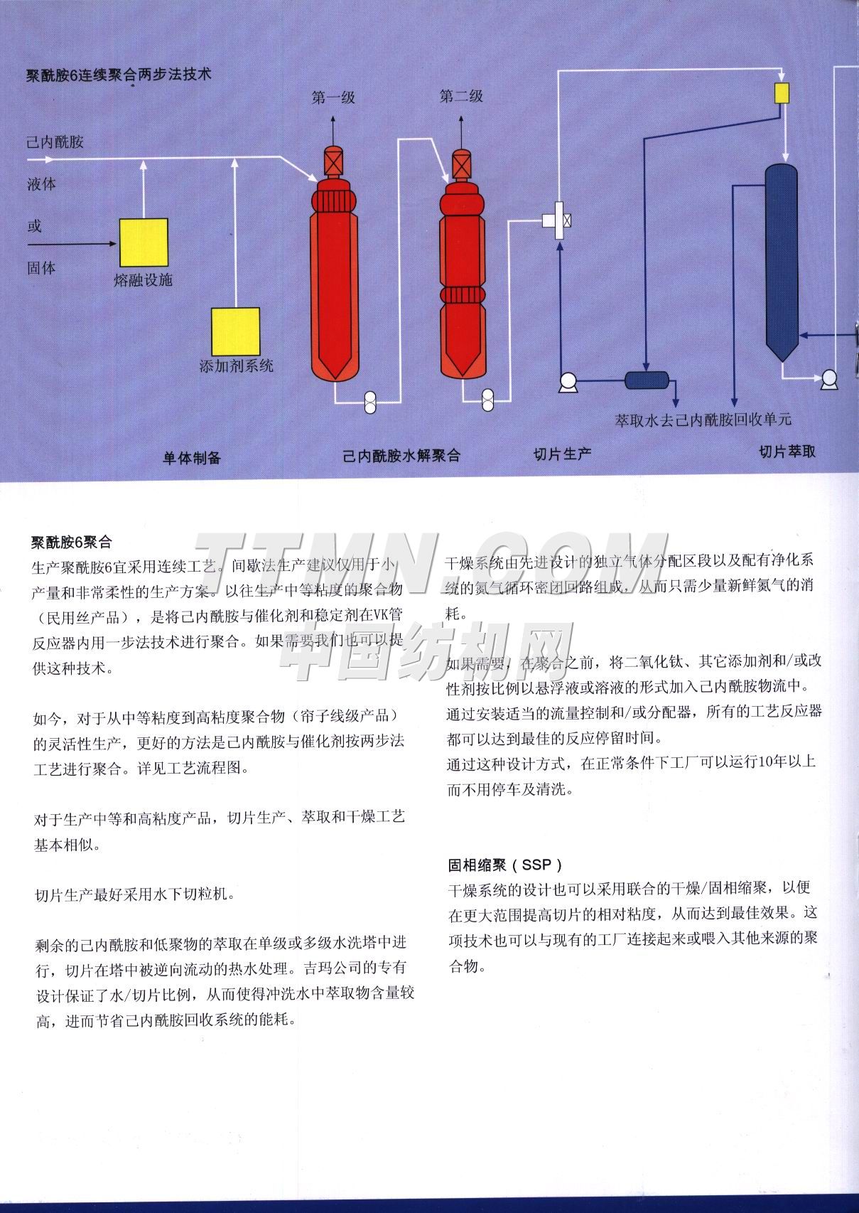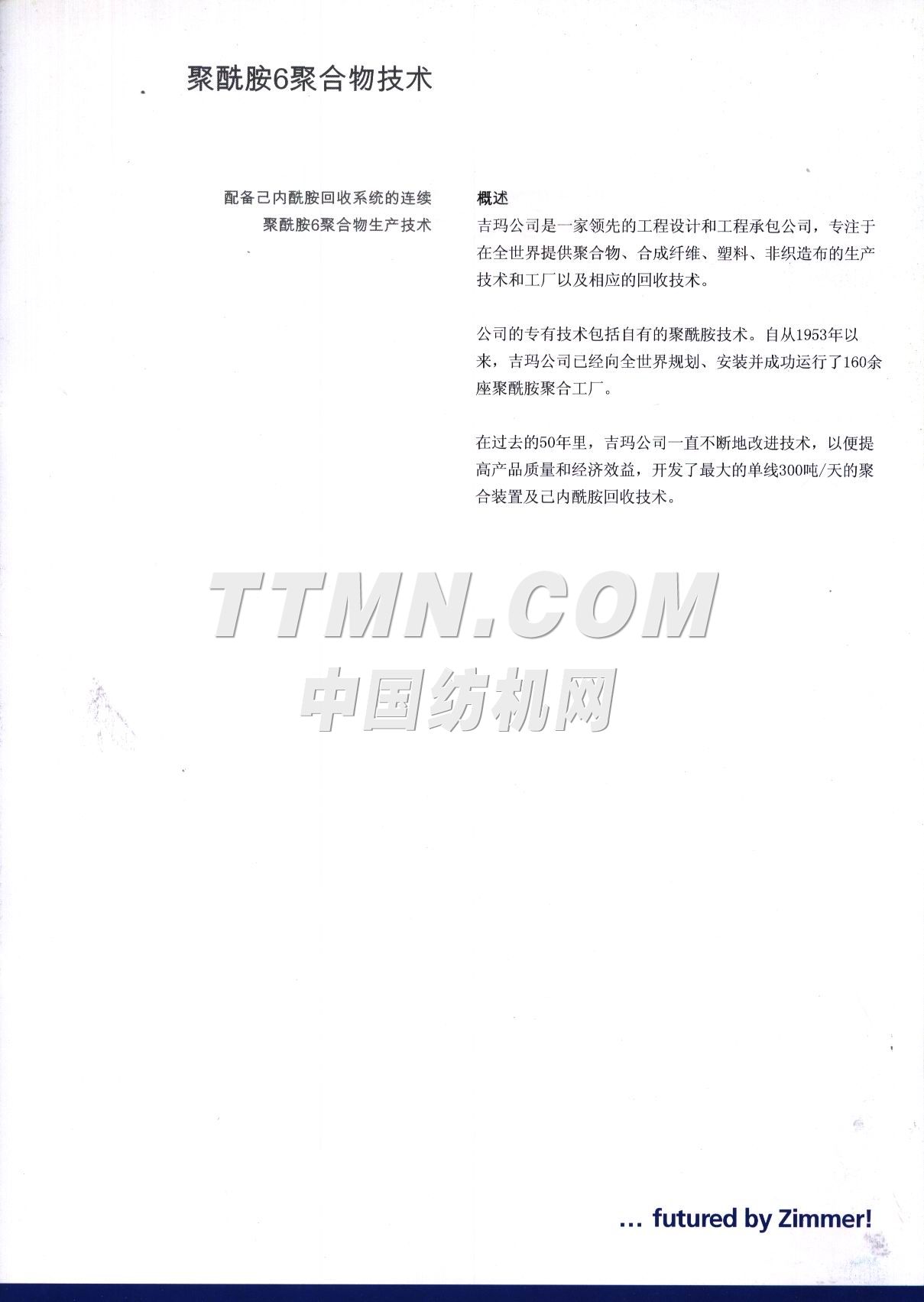 吉玛股份公司是一家领先的聚合物和合成纤维工业成套生产线承包商,向全世界提供先进的工艺工程设计,包括交钥匙工程。该公司的专有技术涵盖其自有的聚酰胺和聚酯生产工艺及下游加工路线,包括民用长丝、短纤、工业丝、帘子线、地毯丝、工程塑料、包装材料、瓶级树脂、产业用薄膜以及其喂入原料、生产废料和最终产品的回收系统。吉玛是美国首诺公司腈纶纤维工艺的独家工程合作伙伴。近几年来最重要的工艺开发:1、 用于生产薄膜和胶片的聚对苯二甲酸乙二酯(PET)及其相关的添加剂系统2、 与壳牌化学共同开发的PTT技术,用于纺织、地毯及工程塑料领域3、 用于饮料瓶和包装材料的均聚和共聚聚酯4、 高粘度缩聚反应器5、 适合高性能纺丝工艺的改性聚合物6、 高强度工业丝7、 生产高性能纱线和纤维的纺丝系统8、 用于PET生产的不含重金属的催化剂...