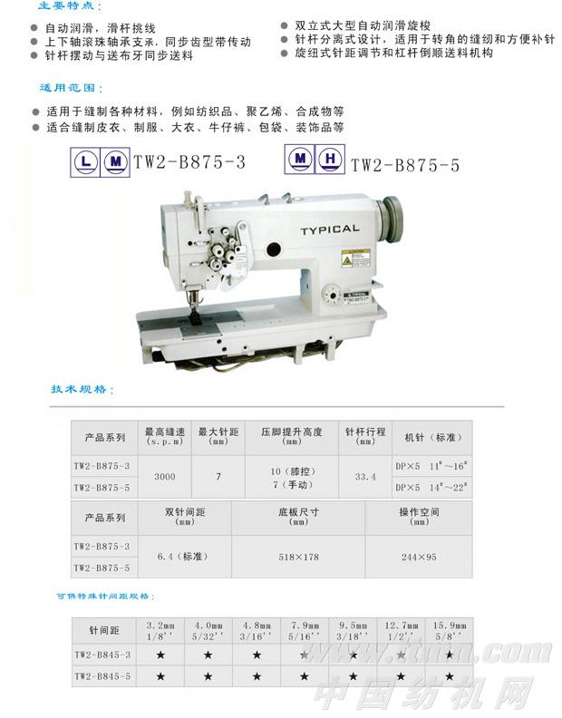TW2-B875-5高速双针大旋梭针送料角缝缝纫机
