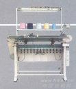 自动毛衣编织机:该机节省劳动力,降低劳动强度,提高生产效率,使编织更具人性化 (1)本机是同步皮带传动,变频调速.具有全自动收放针,自动计数停车,自动扩幅(自动放针时),自动缩幅(自动收针时),自动换色,断针自停、断线自停、浮目自停、掉片自停等故障停车并自动报警。 (2)可编织各种毛纱的衣片、袖子(有下摆罗纹)、裤子(有下摆罗纹)门襟、下摆、领子、围巾、帽子等织物的有规律提花功能。