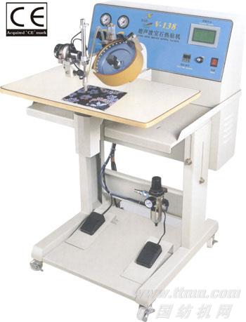 本机是通过超声波高频震动而产生热能将不同型状的人造宝石根据客户所需不同图案而热贴在各种服装面料上。
