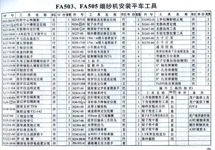 FA503、FA505细纱安装平车工具