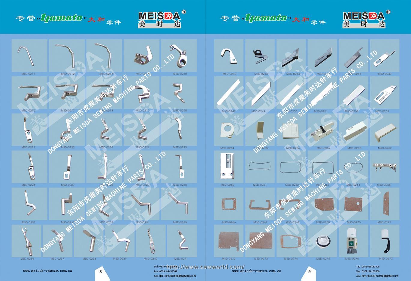 东阳市虎鹿美时达针车(原宁波江东美时达缝纫设备有限公司)是中国规模最大的大和(YAMATO)缝纫机零件供应商,专营大和零件。产品种类已达6000多种且80%以上均为原装零件,涵盖了Yamato绷缝机VC、VG、VF、VE/VEU、CF、CC 、VT,包缝机AZ、AZG、CZ等以及曲臂式四针六线FD-62等所有系列。同时提供特殊零件的定制和原厂代购业务!旗下公司同时经营JUKI,BROTHER,PEGASUS,SIRUBA等缝纫机零件,同时提供原装针位组,期待与您的合作!原装品质保证--因为专业,值得信赖!如有需要请直接提供Yamato零件的国际编号,或提供指定机型的零件图进行查询。大中华地区免费服务热线:400-826-3326 Fax:+86-579-86152509 QQ:604449055 Skype:meisdasewing E-mail:meisda2527@126.com