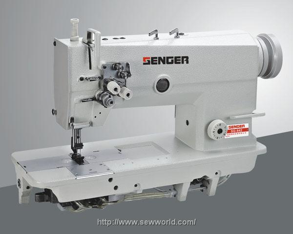 商品描述: SG-842高速双针平缝机系列本机采用双直针,立式自动加油旋梭勾线,滑杆挑线,构成二行双钱锁式线迹。针杆采用机械式分离与联合;上下轴用滚珠轴承支承,机针与送布牙同步送料方式可有效地防止布料的起皱与滑移;旋扭式圆盘调节针距和杠杆式倒顺送料机构,操作方便。适用缝制衬衫、制服、大衣、女内衣、牛仔裤等。With two straight needles, self-lubricatin vertical-axis rotating hook for catching thread loops and sliding cam thread take-up, secf-lubricating can produce two lines of lockstitch. Serve for the purpose of sewing shirts, uniforms, jeans, overcoats, etc. Applied to a wide range of sewing materials. Synchronized feed by needle and feed dog can prevent slippage and puckering between layers of materials. Suitable for stitching shirt, uniforms, underwear and jean etc