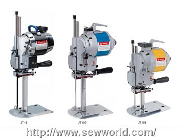 产品型号:JT 产品名称:自动磨刀裁剪机系列 产品说明: 本公司采用国际先进技术所生产的JT103、JT-3两大系列自动磨刀裁剪机,规格齐全,采用大功率电动机,离心开关起动,并装有自动磨刀装置和自动润滑系统。具有工作平稳,操作灵便和剪裁能力强等特点,是服装行业必备的设备。适用于剪裁棉,毛、麻、丝绸、化纤、海绵、皮革等面料。