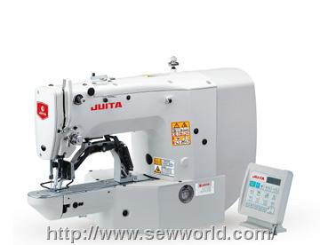 产品型号:JT1900A 产品名称:高速电子套结机系列 产品说明: 本机采用“自动侦测织物厚薄感知系统”,拥有更高效的生产性能及优质的缝制品质,另外拓展了缝制范围、缝制花样更是达到50个。一方面装备了电子夹线器(电子夹线机构)、自动抬压脚机构,扩大缩小机能使得可在启缝点处进行调整,从而具备更佳的操作性能;另一方面配备有信赖性优越的控制箱,使用简便地操作控制盘。