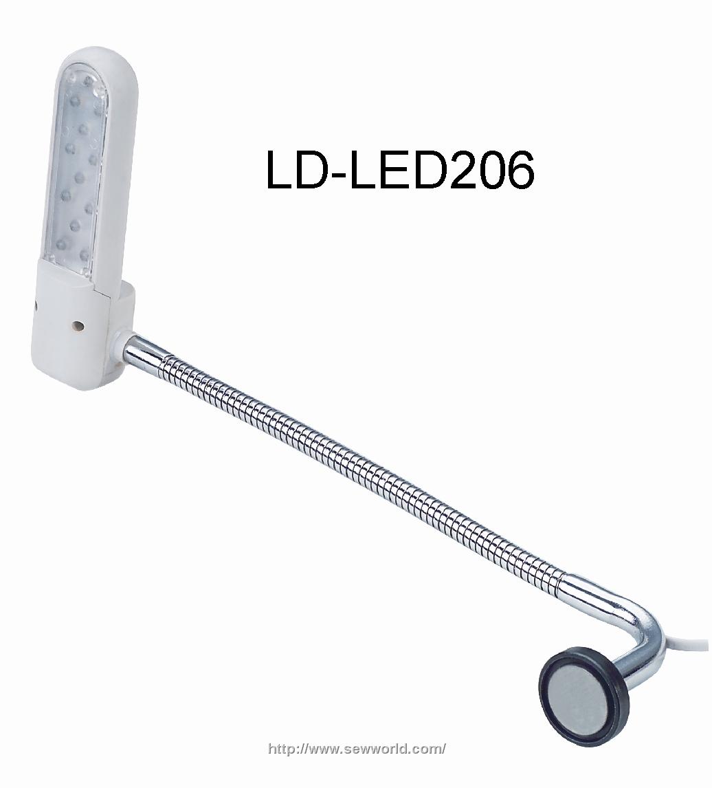 型号:LD-LED206 (12颗)电压:95V-265V ,380V频率:50HZ 60HZ(可通用)适用范围: 任何衣车,或者其他机械照明特点: 用磁铁固定在缝纫机上, 恒流电源寿命:1-2年保质期:1年