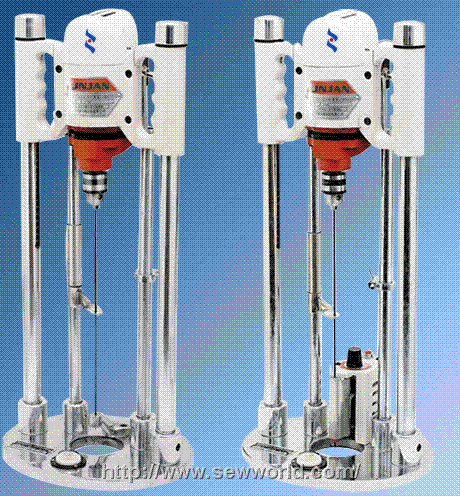技术特色:本机是报装生产中不可缺少的专用设备之一,适用于棉、毛、麻、丝绸、化纤等布料钻印记孔的工作。本机体积小、重量轻,操作方便,钻印用的钢针有粗、细两种规格,钻印时操作者可根据布料特点进行选用。本机电源为单相,电压为220伏,适宜不具备三相电源的用户使用。