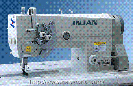 技术特色:本机具有双针离合式针杆结构,使纫拐角、锐角、直缝时准确方便,针杆与送布牙同步送料,可防止缝料滑移,线迹美观、整齐,适用于女内衣、牛仔衣裤、男女大衣的转角缝纫装饰缝纫。