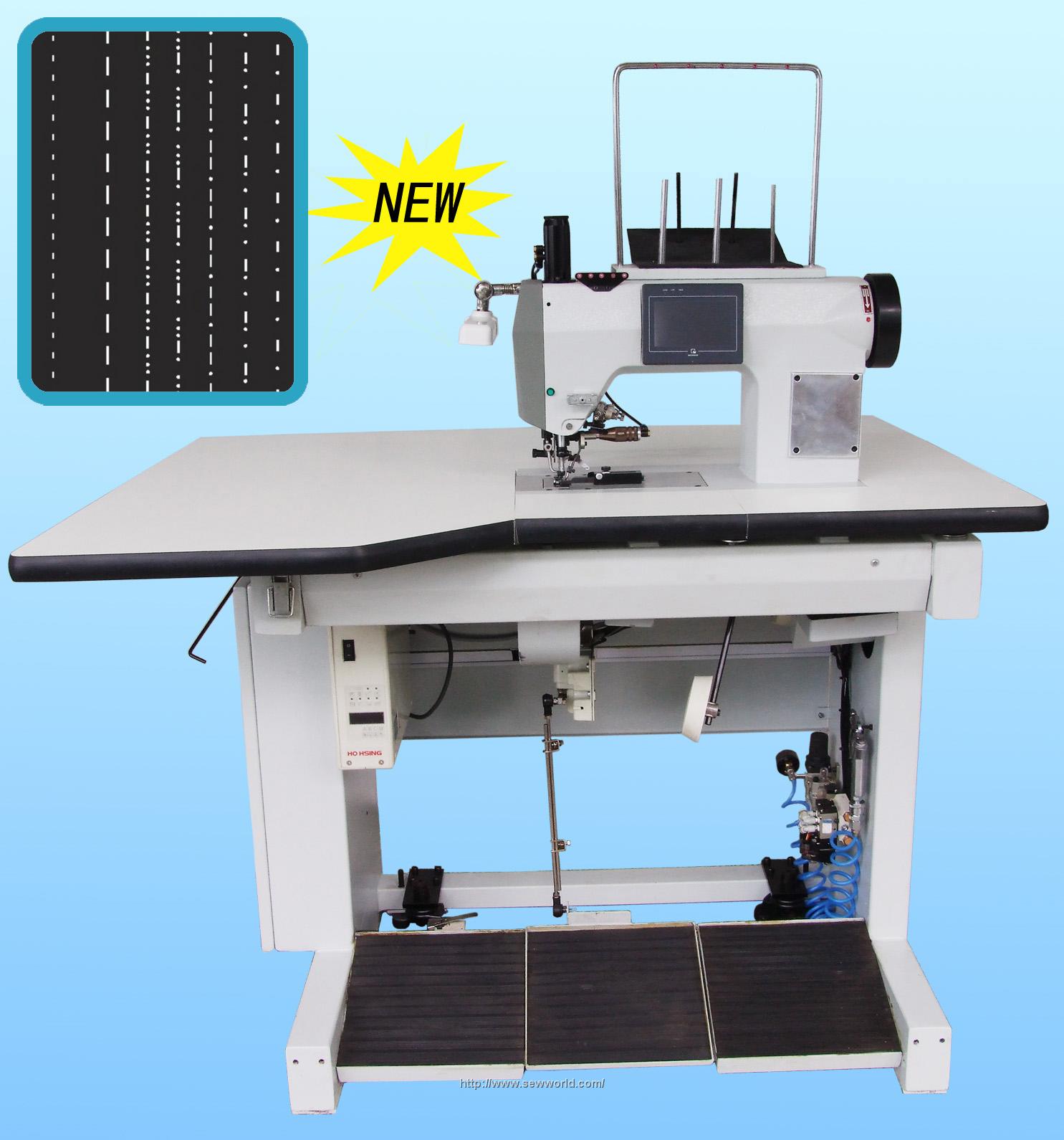 本机具有电脑数字控制系统,缝制速度、针距、珠点调整,独立气动压用途:适用于高级西服、大衣的装饰缝纫,也适用于其他各种类型的男女休闲装、皮装衬衫、夹克衫等。1、前后自动倒针功能,数字式针码彩色触摸屏操作,内置99个针码花样。2、采用日本三菱控制系统。3、(珠点)大小。4、脚和膝动压脚。5、自动剪线和手动前线功能,半针调整按钮、灵敏的脚动珠点正反调整开头,独特的花样接线功能和衣服前后打结功能。6、可无限量任意调节不同线迹的花样变化、内存有1000种花样可存。7、单针单线真珠点珠边机,无需专用珠边线,只需普通缝纫线即可。8、采用钩针、无需穿线,将线置于钩针即可,车针使用寿命长。9、上下同步送料,缝制更轻松,布料不会起皱,针距长短保持均匀。10、针迹长度:最长针距6mm最短针距0.5mm。10、线迹型式:1针1线(手工线迹)。11、缝纫规格:90cm。12、机针型号:780C SIZE:16# 18# 20# 23#。13、压脚提升:8mm气动提升。14、润滑油:锭子油。15、外型尺寸:128*96*86cm。16、重量:±170 KG。17、电源:220V 50Hz / 380V 50Hz。18、电机功率:0.55kw19、空气压力:0.6MPa