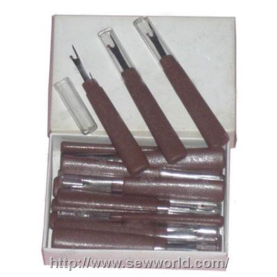 【颜色】:大号咖啡色【规格】:(加盖)长:13.5CM 宽:1.6-1CM(无盖)长:13CM【材质】:仿木柄拆线刀【用途】:手工DIY制作工具【包装毛重】:24.5KG【包装净重】:25.5KG【包装数量】:100个/盒 2000个/箱【包装尺寸】:30cm*31cm*43cm【使用说明】:1、只用挑针部分,轻松将错的绣线挑下来;2、如果不想重复使用绣错的绣线时,可用中间凹陷处的刀片划断绣线。3、拆线器还可以用来剪扣眼(用中间凹陷部分刀片可划开需要开扣眼的部分),实在很方便!特点:刀体的材料选用的是轴承钢,它的硬度和耐磨性好,刀口锋利且耐用性好。刀体刃口部分采用机器磨削,因此刃口形状与锋利度好,每把刀的刃口都进行检验。刀体与塑料件的配合也恰到好处,不会脱落