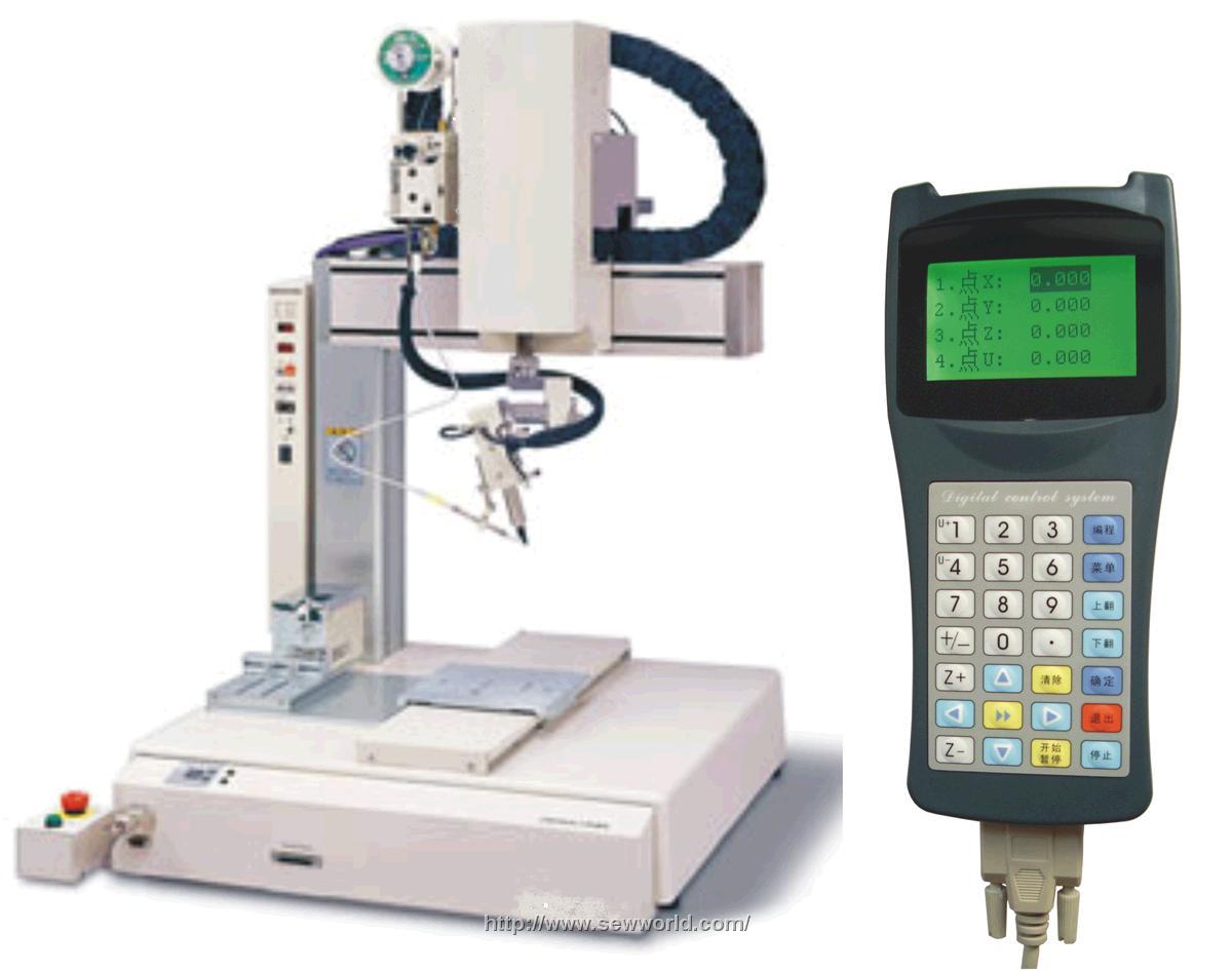 焊锡机器人控制系统---TC201H是公司最新设计的一款焊锡机器人专用的控制系统,本系统可以满足各种类型的焊锡工艺要求,提高您的生产品质和效率。系统特点操作简便--拥有相当友善的使用界面,借由教导盒(编程器上LCD所显示的信息能简易快速地输入焊锡程式,复杂图形可配套AUTOCAD输出软件,完成程式教导,适用于五轴自动焊锡设备,锡线自动控制送料速度;复位次序可选. 走位精准--五轴控制重复精度最高达到±0.001mm,采集完成后精准修正,原点检测及复位功能,其精简的体积符合大部分电子工业的焊锡机器人彈性应用超大記憶容量--记忆容量大,板载64MB内存(可扩展),U盘接口,以适应产品众多的生产线不同文件存贮.权限管理----系统设有密码验证功能,以便于用户对各种操作权限进行限制.高速控制核心----控制核心采用32位浮点高速DSP 全光耦完全隔离外界电磁干扰,系统工作稳定可靠。集成驱动控制----支持步进、伺服电机驱动,16路IO输入输出,可同时控制8个气缸。灵活软件操作---可选配CorelDRAW和AOTUCAD直接输出软件,满足您对复杂图形编辑的要求。选配触摸屏--操作面板可选手持及触摸屏控制,可根据您的要求进行更改,真正做到“按需定制”技术参数:电压输入:24伏寄存器号范围0~99,寄存器值范围0~9999999延时设置,单位为:毫秒,设置范围:0.00~1000000轴运动,单位为:毫米,精度:±0.001输出脉冲频率,可达100KHz64M用户文件存储空间本系统响应速度快、动作控制精度高、抗干扰能力强;提供一站式完整的自动焊锡机器人控制解决方案,降低成本,提升性能及效率是我们的宗旨。