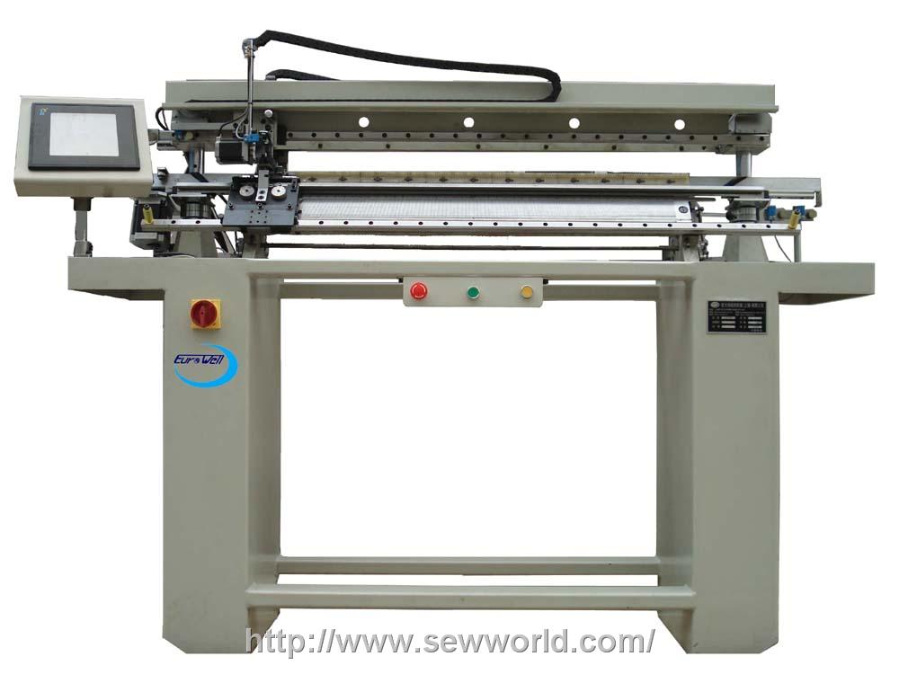 欧大纬单针床引塔夏电脑嵌花横机高性价比专业替代手摇机的电脑嵌花横机 织出效果和手摇机一样,但效率提长升几倍,是提升中小加工厂竞争力的有效装备!EW-009C特点:有嵌花装置机器经验的操作者几小时就可以掌握。机器易于操作,每人可看管数台机,大大节省了劳动力。色彩的转换具有独特性。编制单针或单行花型可不受任何限制。先进的罗纹转移装置可将编织好的罗纹轻松方便地转移到 嵌花编织机上。花型针数的增加与减少与手工嵌花针织机方式完全相同。控制箱的优点:微电脑控制的简单操作。配有机器检测及自检装置。液晶显示触摸控制面板,大大提高生产效率。U盘输入花型数据。机器介绍: 1.完美的织出单粒菱形加虚线,独特的纱线绞接方式,创造出完美的布面效果。 2.机器全面升级,提高了制版速度,无需人工再去计算。 3.专利的纱嘴设计,超乎想象的90个吵嘴。 4.独特改进机头可移动装置,更加方便的进行操作。 5.电脑制版,整机微电脑控制,全中文触摸操作,操作简单,极易上手,维护更加轻松。 6.加针全自动,收针手工辅助,显示屏中文提示,不用记工艺,傻瓜式操作。 7.密度调节采用凸轮方式,并有刻度盘指示,调整方便,精确。 8.纱架天线台全不锈钢设计,美观耐用。 机器功能: 编织速度:根据纱线强度自由设定 密度调节:手动凸轮调节,刻度指示 自停装置:断线,结头,程序错误 技术参数: 针型:5G 6G 7G 9G 12G 14G 幅 宽: 10"(25厘米)--40"(100厘米)换色范围: 1-90色