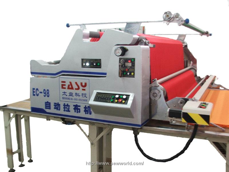 厦门太益科技有限公司,来自台湾,生产全自动智能型拉布机,适用针织、梭织、圆筒针织布料,无论是高弹力、柔软或轻薄的布料,均能完美铺布。太益EC-98 梭织、针织、圆筒针织布三用型拉布机主要功能:1. 采用进口PLC操作系统,保证机器平稳运行。2. 无张力式拉布作业,无拉伸现象。3. 流线外型、降低风阻、减少噪音、减低震动。4. 简易设定机器运作,单人可操作,节省人力,无需人工过多干预。5. 紧急停止装置,紧急停止时,已下放布料不会拖拉。6. 切刀路径依布幅宽度调整,节省多余往覆时间。7. 自动对边装置,布边平齐,节省布料8. 具有收料装置,可将铺放在裁桌面之布料回卷。9. 无布料自动停机,或设定层数到了亦自动停机。 10. 锁码式无线遥控,具防止突然状况之安全维护。 11. 梭织面料、高弹力的针织布料,单向铺布或双向铺布均可。商品规格:拉布宽度 1200mm--2200mm(常规)2400mm--3200mm (超规)裁台宽度 1830mm --2430mm (常规)2430mm--3530mm (超规)重量 360KGS 拉布高度 ≤220mm (常规)≤320mm(超规)卷布直径 450mm(max) 匹布直径 900mm(max) 行走速度 80m/min(max) 电源 220V (各机型可依客户实际需要之规格、功能和自动化配备设计制造,欢迎与我们联络。)