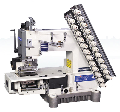 完全自动给油,勾针纵向运动机构,简型车台,利于圆筒型义务之缝纫,适用于高级衣物之装饰车缝,有4针、6针、8针、12针、13针等不同针位的机型一机多针,缝制方便,可配卷边器,一次性加工成形,是现代缝制修闲的最佳设备。